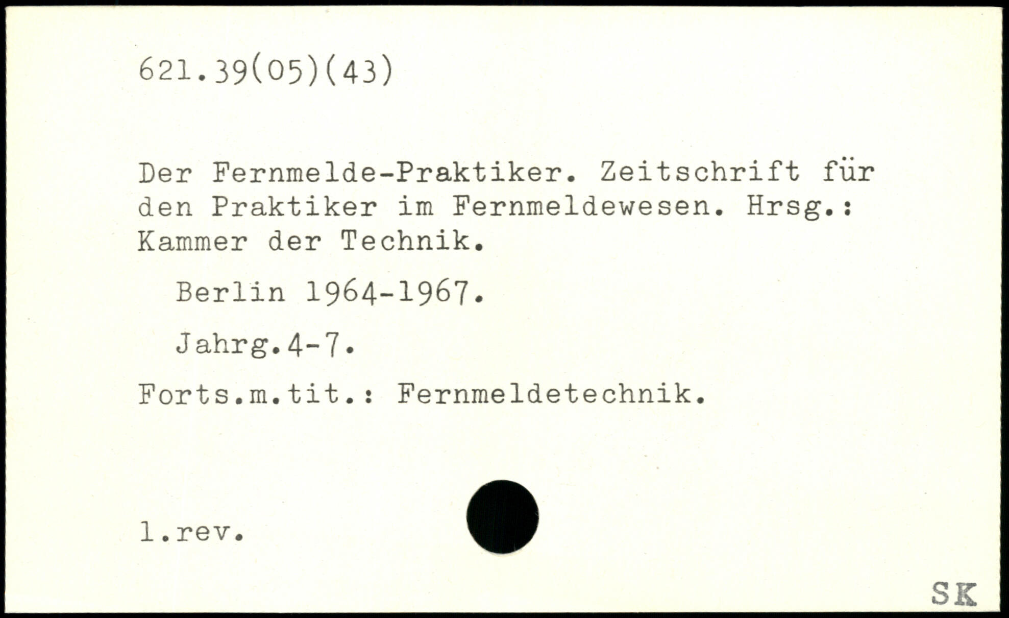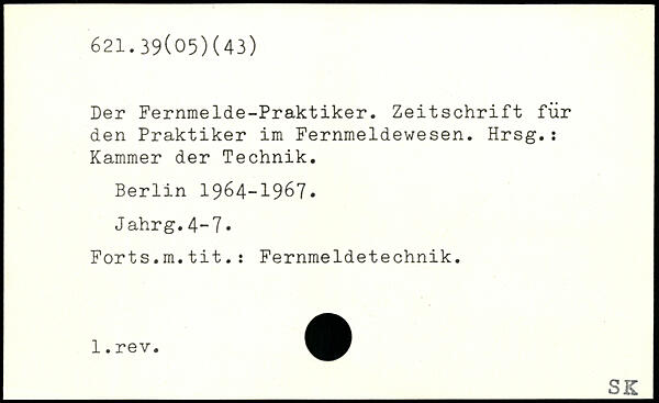 Der Fernmelde-Praktiker. Zeitschrift für den Praktiker im Fernmeldewesen. Hrsg.: Kammer der Technik.