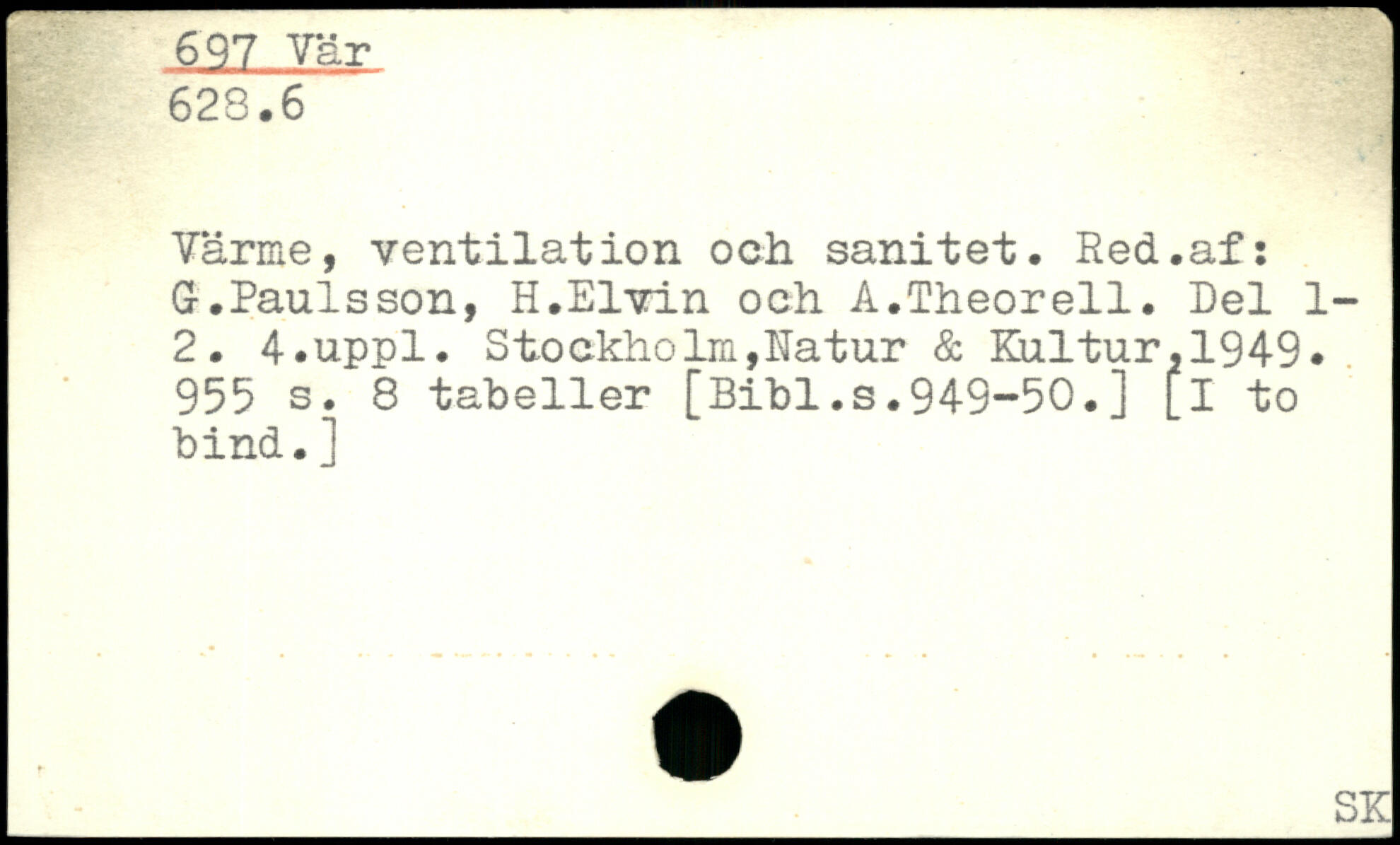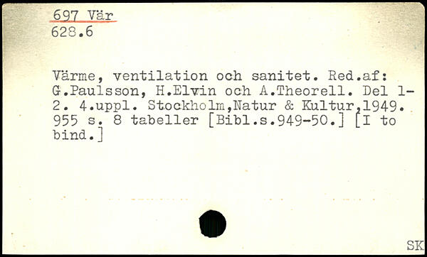 Värme, ventilation och sanitet. Red.af: G-.Paulsson, H.Elvin och A.Theorell. Del 1-2.