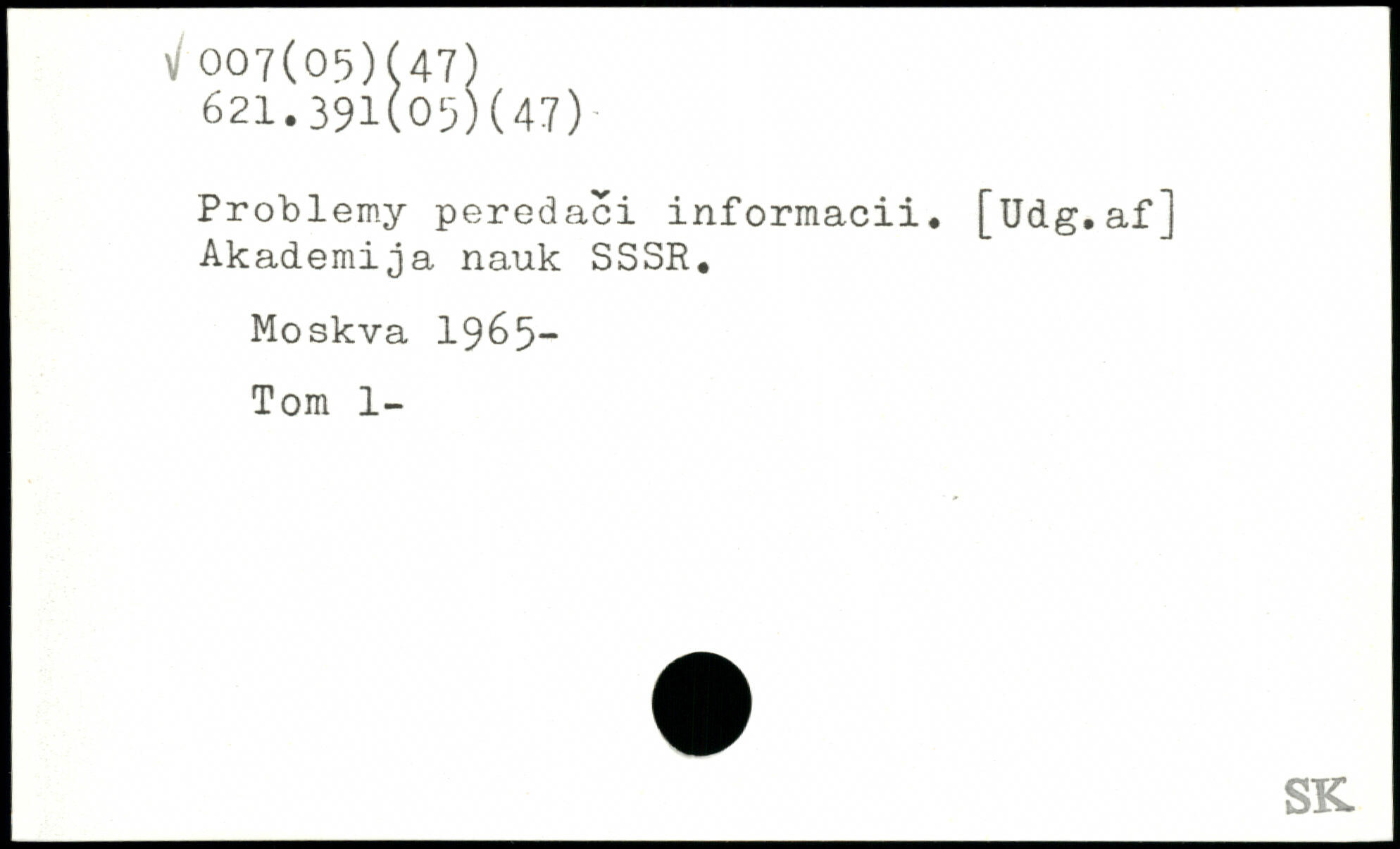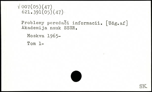 Problemy peredaci informacii. [Udg.af] Akademija nauk SSSR