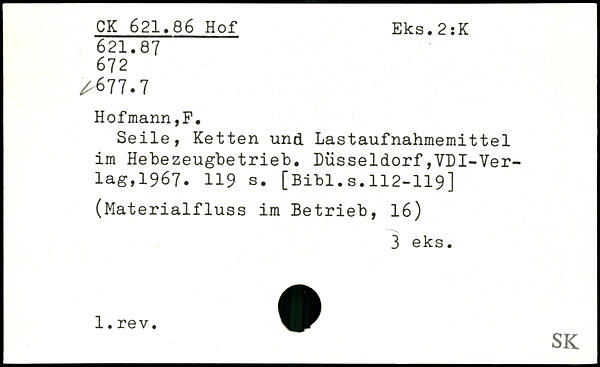 UDK: 621.86 Hof, 621.87, 672, 677.7