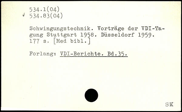 Schwingungstechnik. Vorträge der VDI-Ta-gung