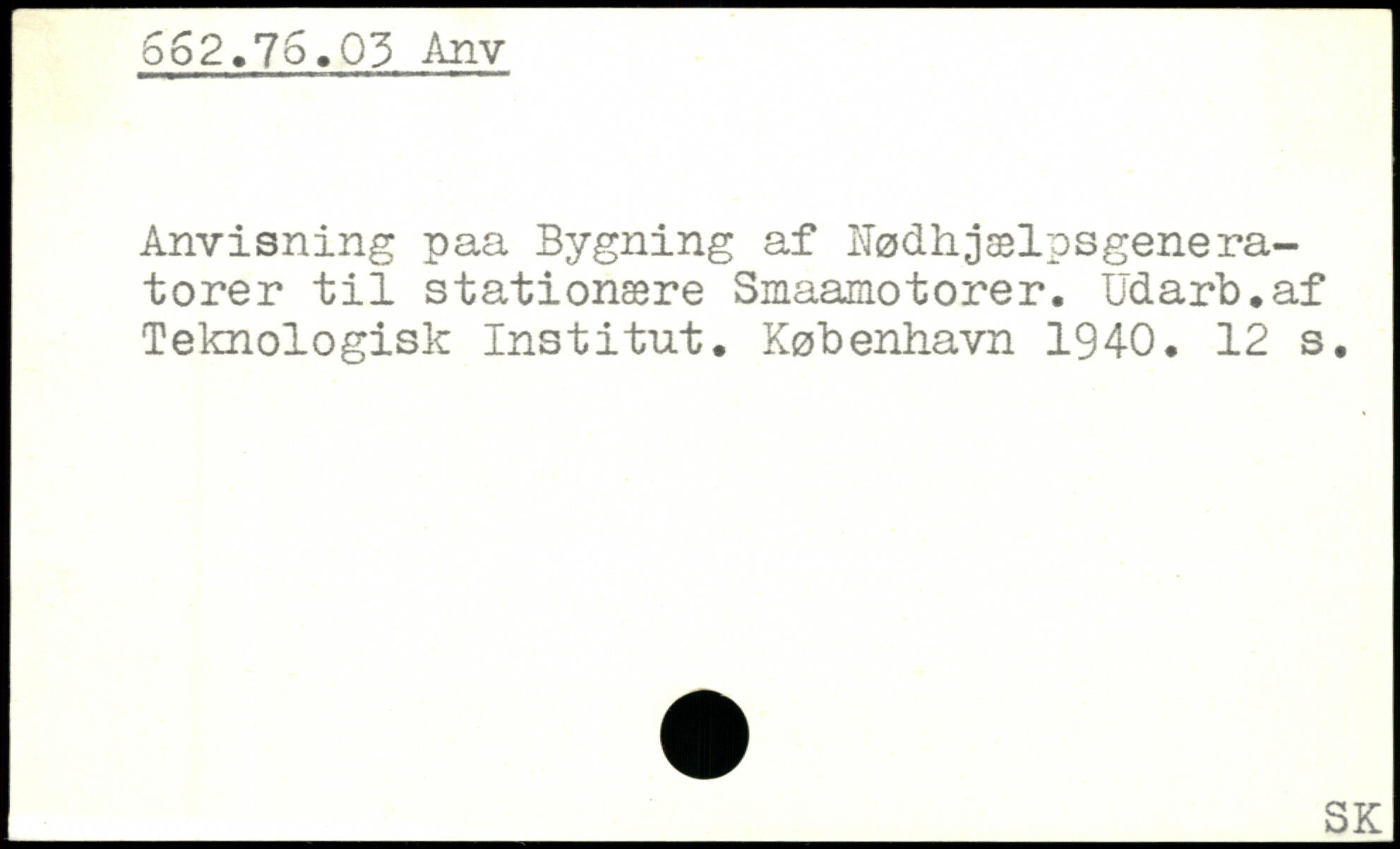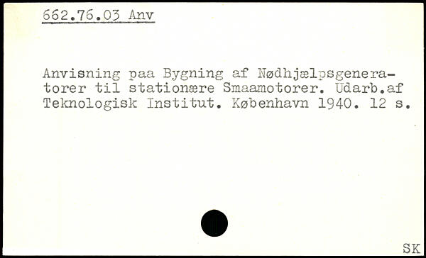 Anvisning paa Bygning af Hødhjælpsgenera-torer til stationære Smaamotorer. Udarb.af Teknologisk Institut.