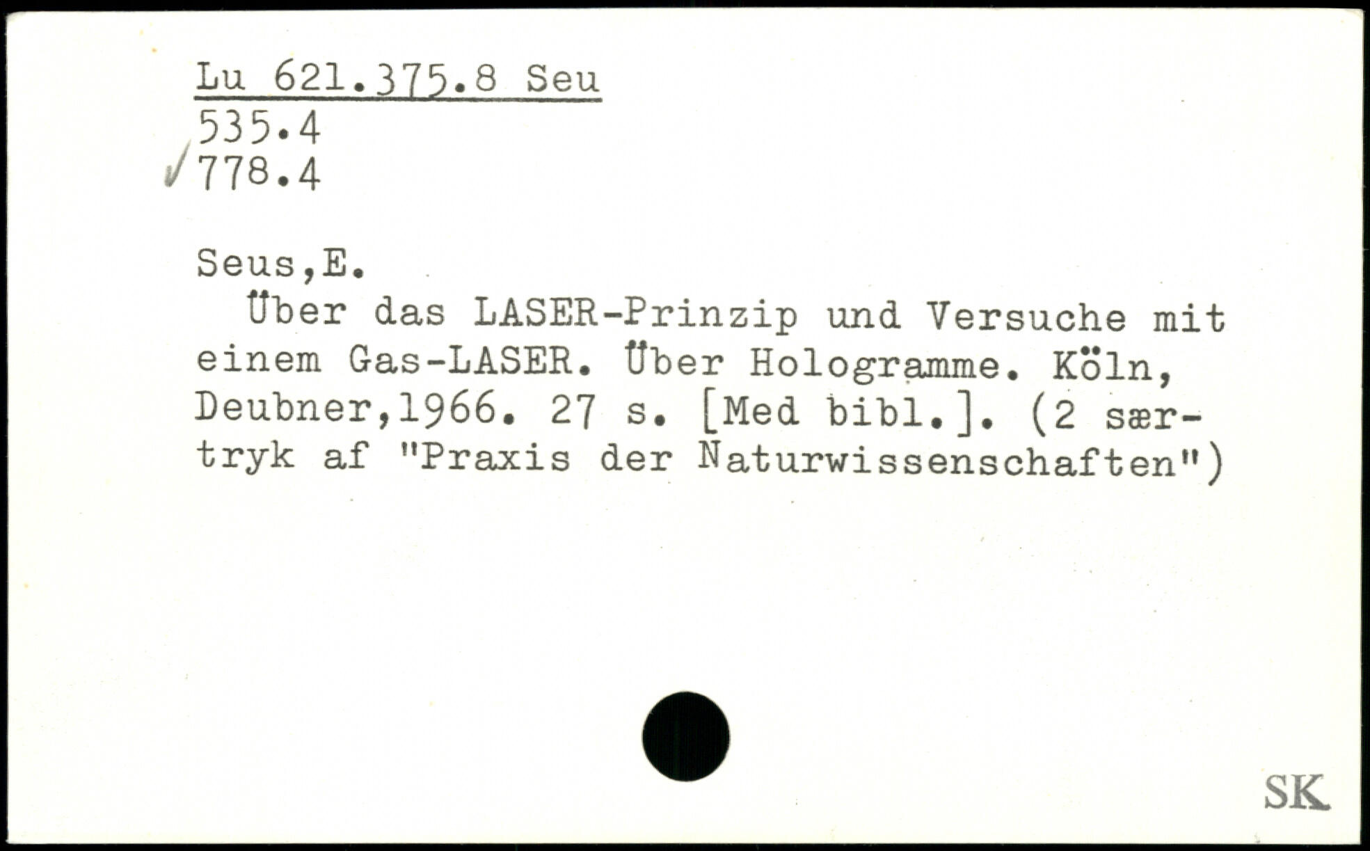 über das LASER-Prinzip und Versuche mit einem Gas-LASER. über Hologramme.