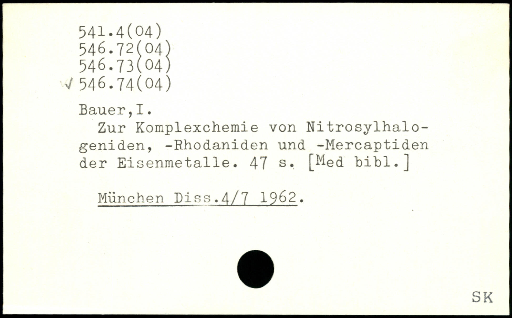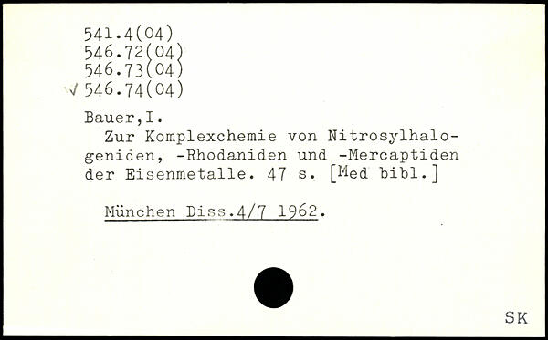 Zur Komplexchemie von Nitrosylhalo-geniden, -Rhodaniden und -Mercaptiden der Eisenmetalle.