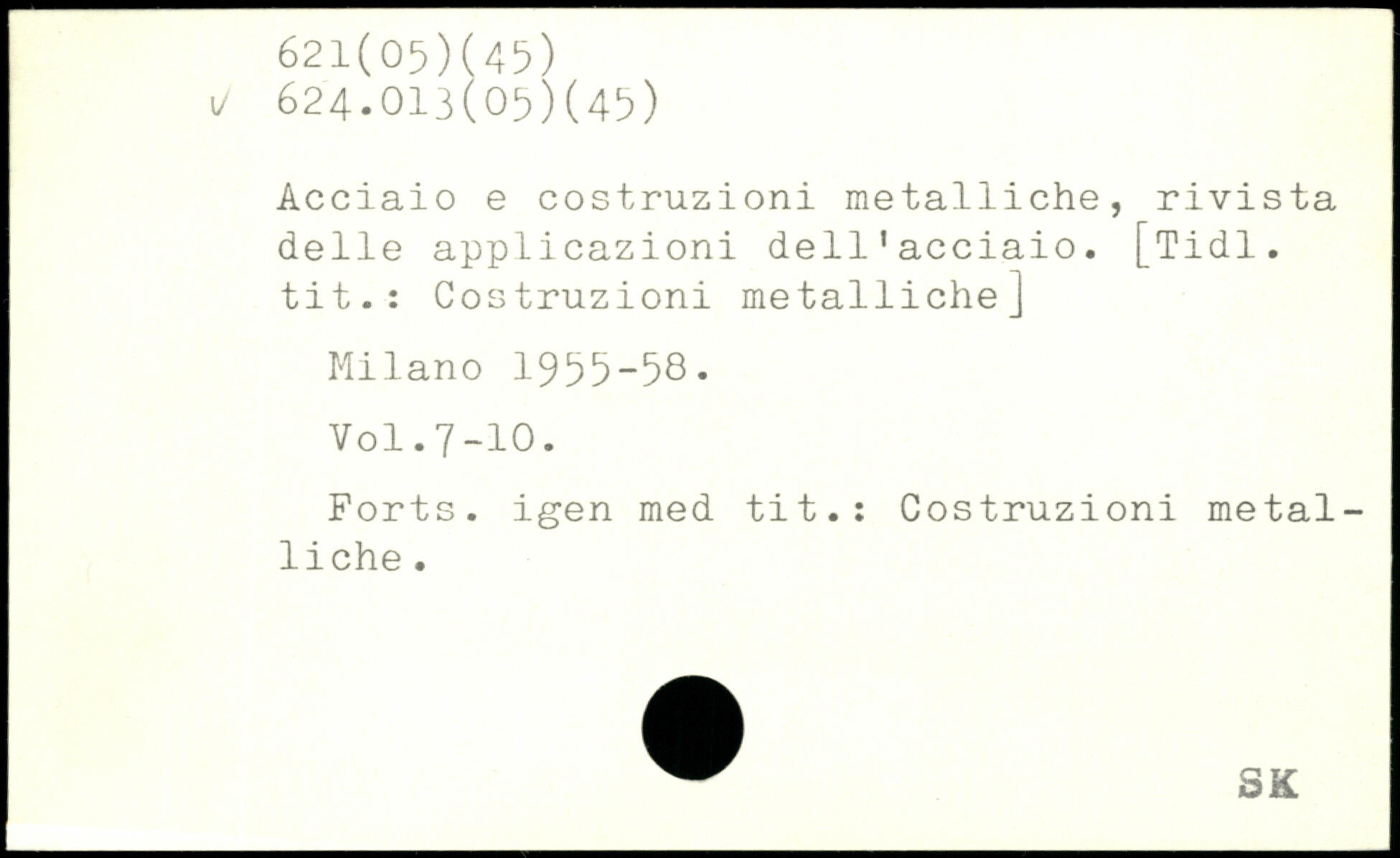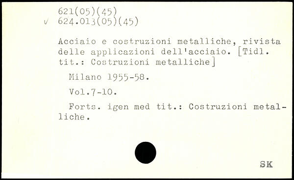 Acciaio e costruzioni metalliche, rivista delle applicazioni dell'acciaio. [Tidl. tit.: Costruzioni metalliche] Milano 1955-58.
