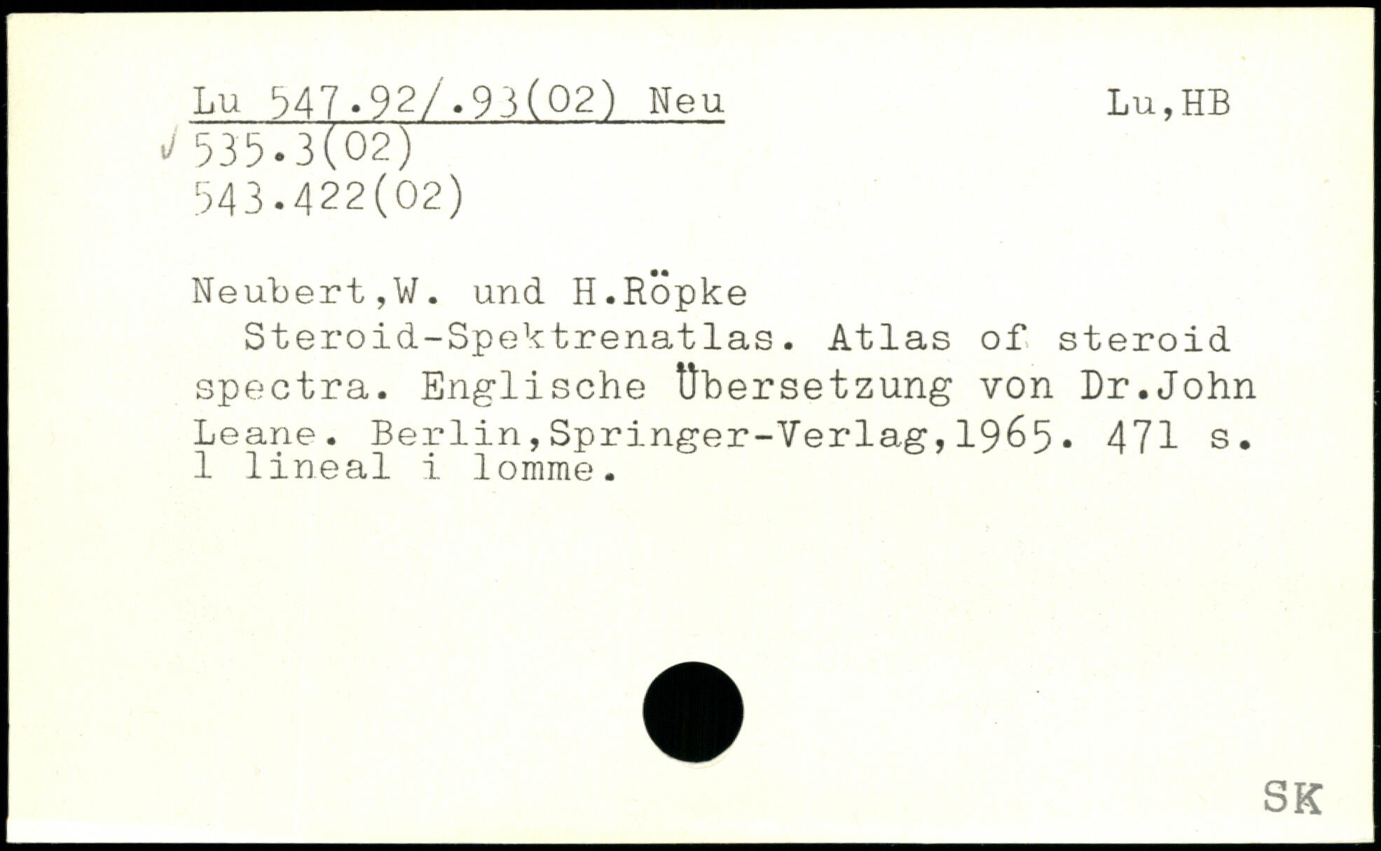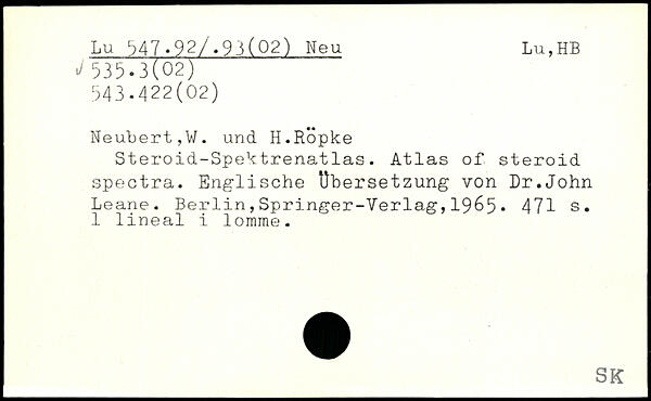 Steroid-Spektrenatlas. Atlas of steroid spectra. Englische Übersetzung von Dr.John Leane. Berlin,Springer-Verlag,19&5.