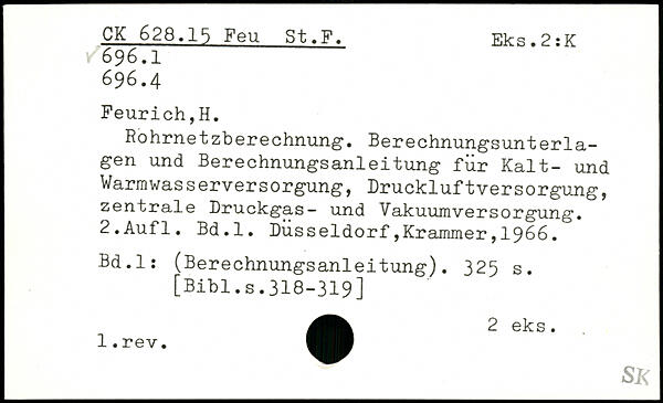 Rohrnetzberechnung. Berechnungsunterlagen und Berechnungsanleitung für Kalt- und Warmwasserversorgung, Druckluftversorgung, zentrale Druckgas- und Vakuumversorgung.