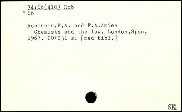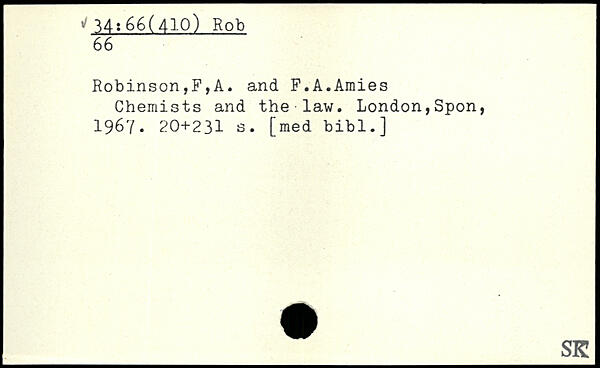 Robinson,F,A. and F.A.Amies Chemists and the law.