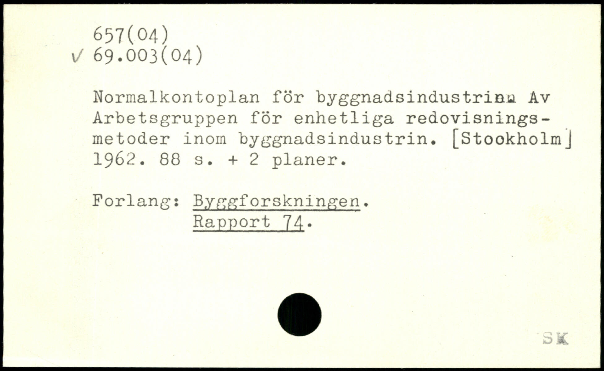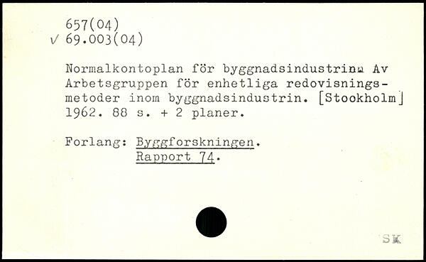 Normalkontoplan för byggnadsindustrins Av Arbetsgruppen för enhetliga redovisnings -metoder inom byggnadsindustrin. [Stookholm] 1962.
