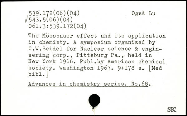 The Mossbauer effect and its application in chemisty. A symposium organized by C.W.Seidel for Nuclear science & engineering corp., Pittsburg Pa., held in