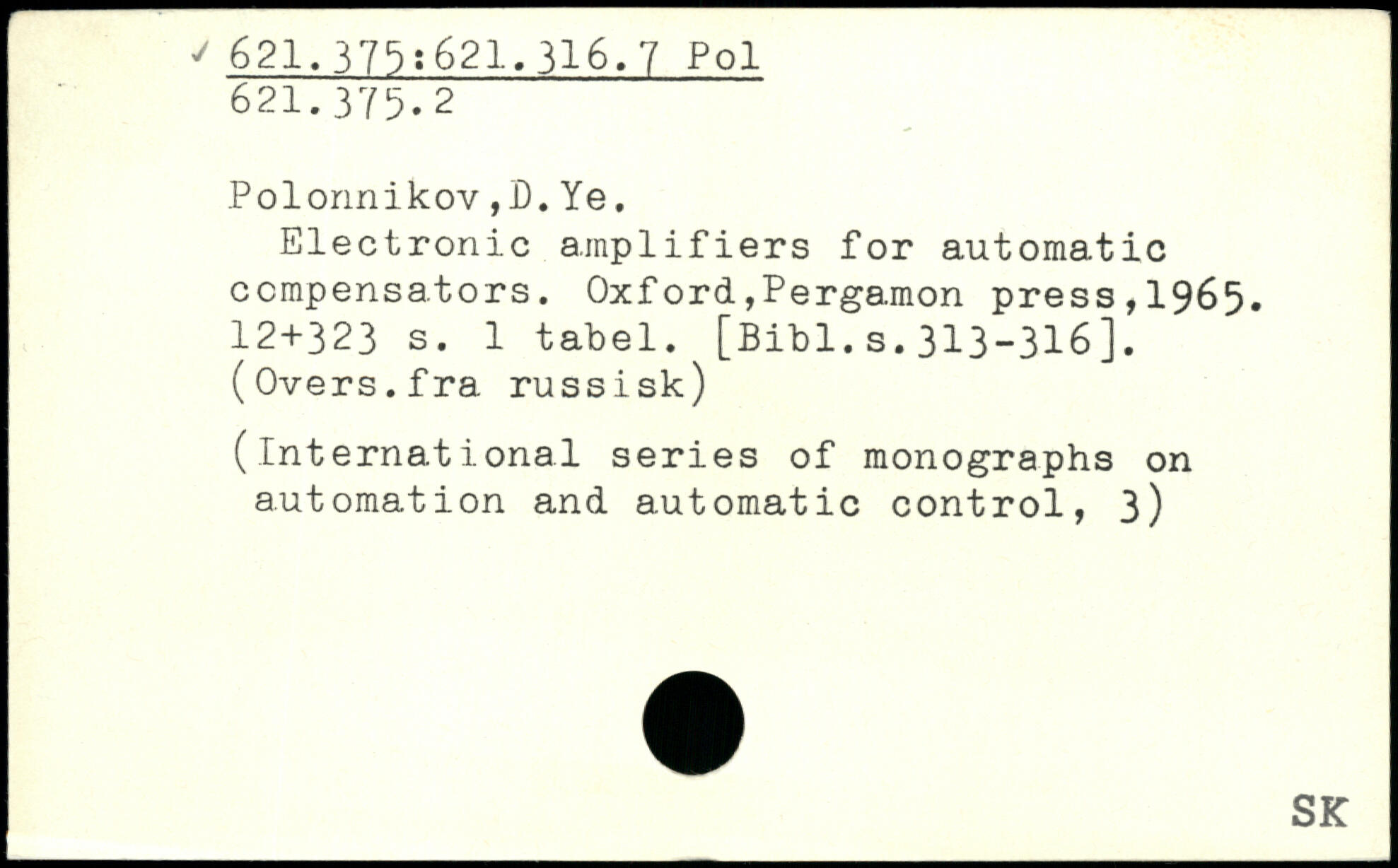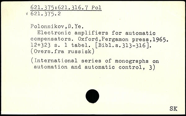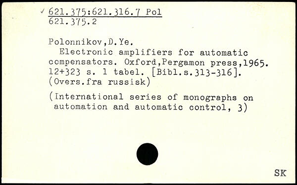 Polonnikov,D.Ye. Electronic amplifiers for automatic compensators.