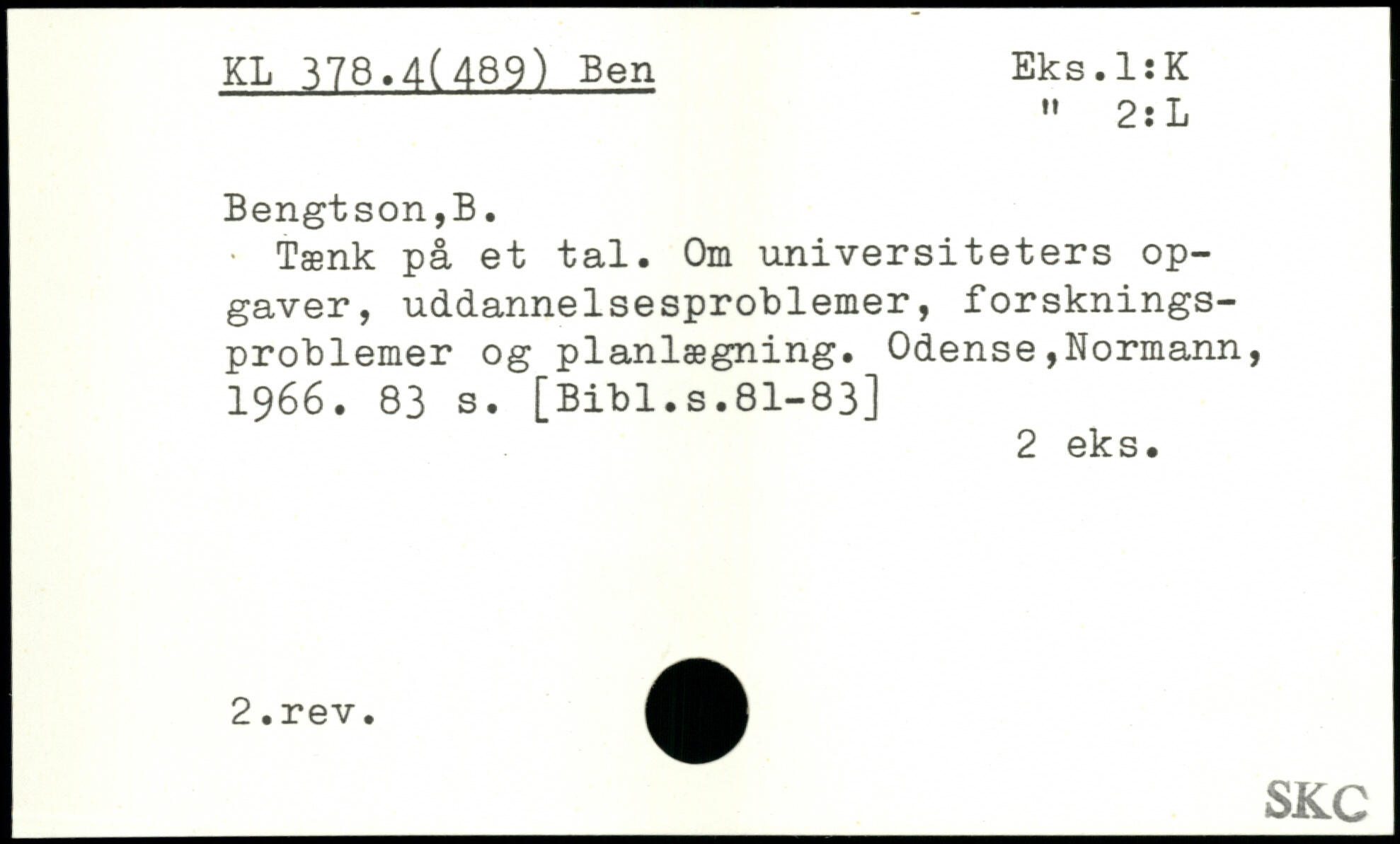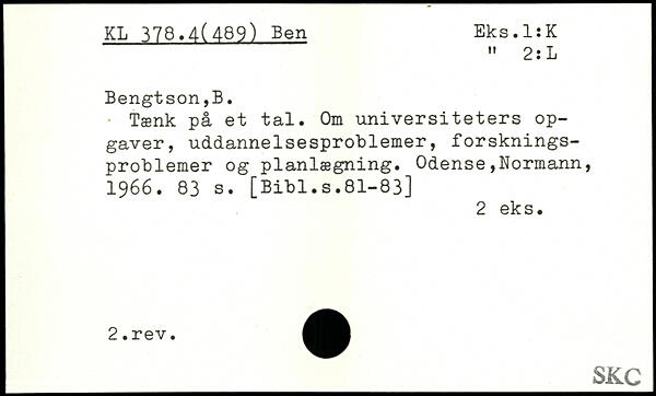 Tænk på et tal. Om universiteters opgaver, uddannelsesproblemer, forskningsproblemer og planlægning.