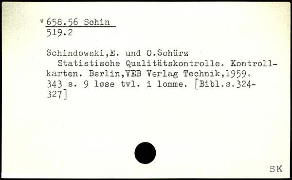 Schindowski,E. und 0.Schürz Statistische Qualitätskontrolle. Kontrollkarten.