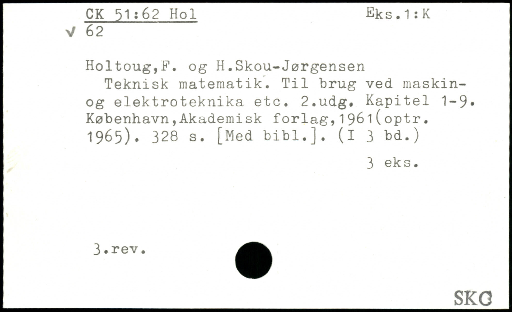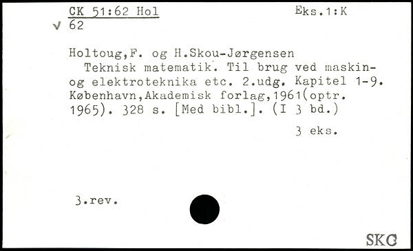 Teknisk matematik. Til brug ved. maskin-og elektroteknika etc.