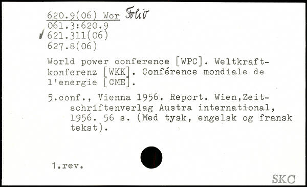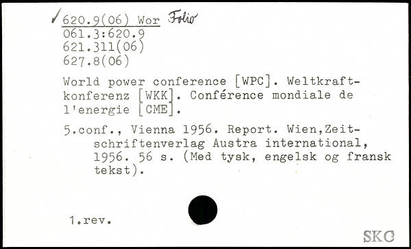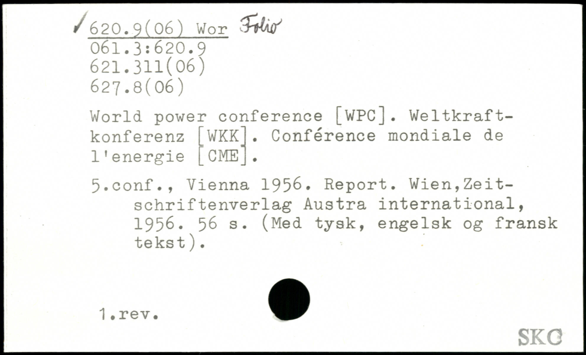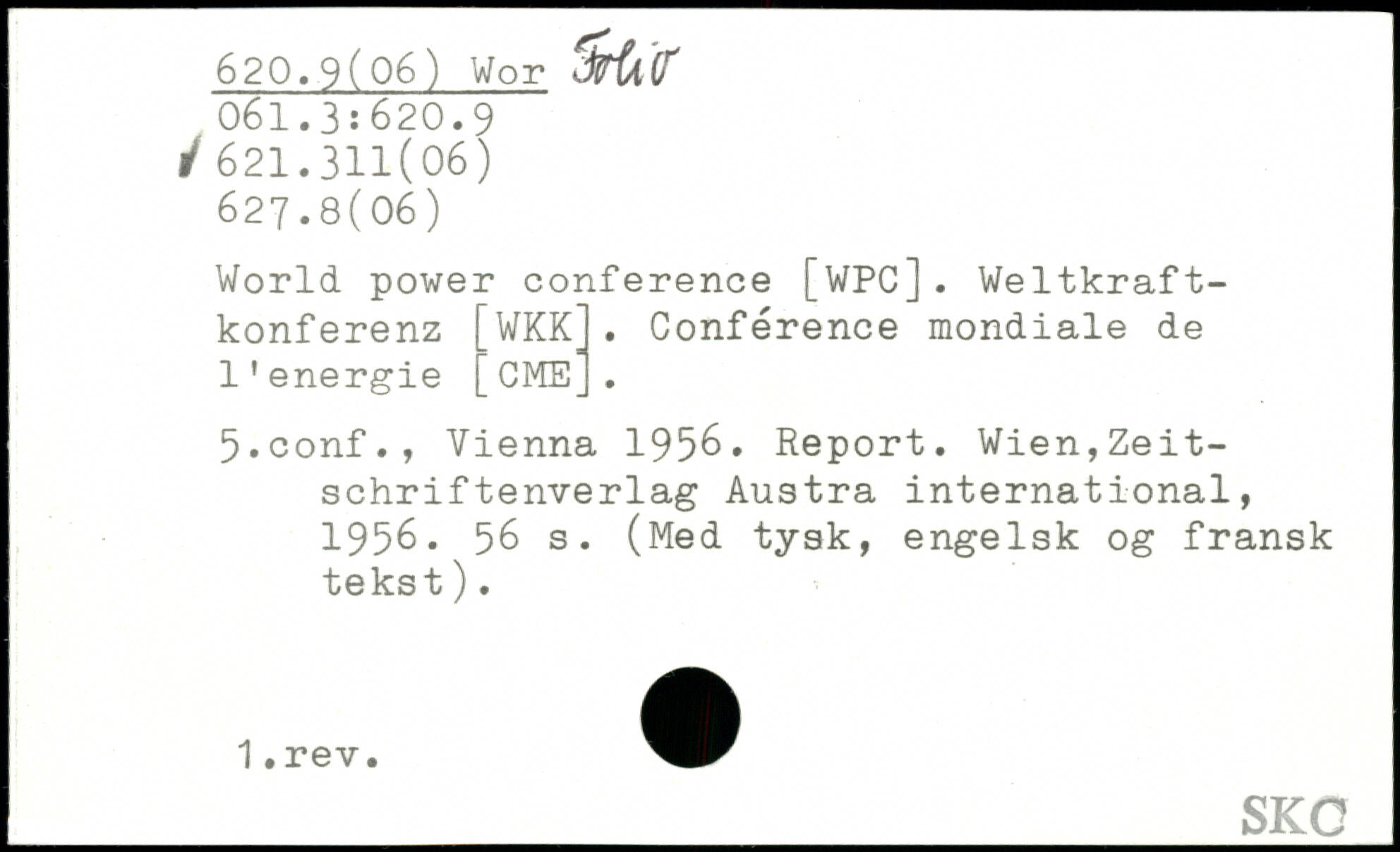 World power conference [WPC]. Weltkraft-konferenz [WKK_. Conference mondiale de 1'energie [CME_. 5.conf., Vienna 1956. Report.