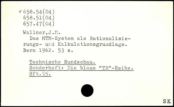 Wallner, J .II. Das MTM-System als Rationalisie-rungs- und Kalkulationsgrundlage.