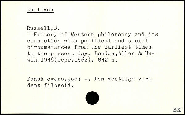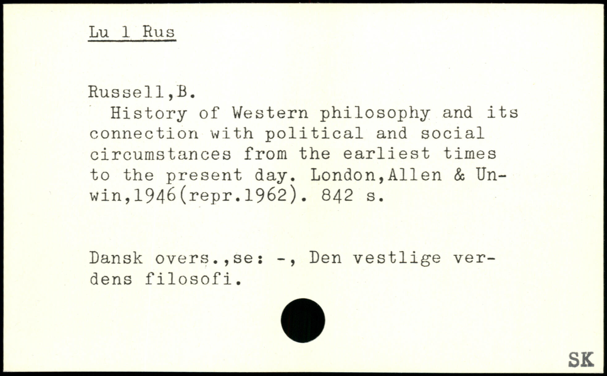 History of Western philosophy and its connection with political and social circumstances from the earliest times to the present day.