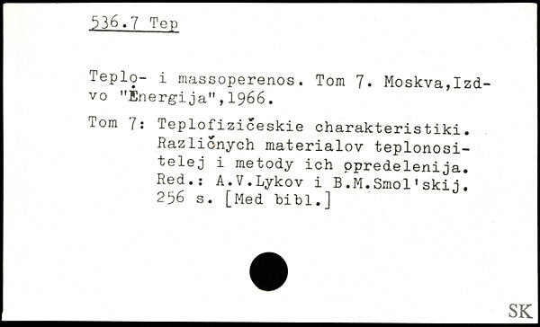 Teplo- i massoperenos. Tom 7. Moskva,Izd-vo "Energ-i ja" , 1966. iom 7; Teplofiziceskie Charakteristik!. Razlionych materialov teplonosi-telej i metody ich ppredelenija. Red.; A.V.Lykov i B.M.Smol