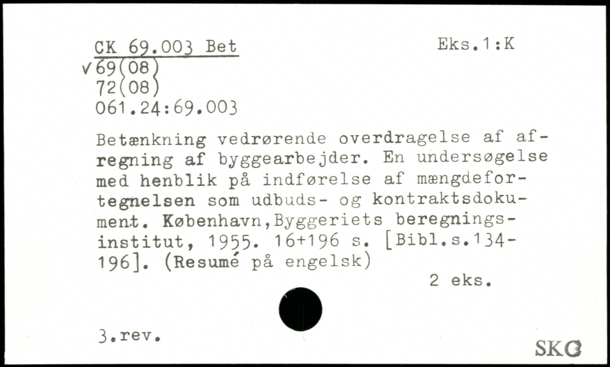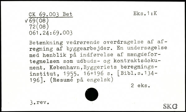 Betænkning vedrørende overdragelse af afregning af byggearbejder. En undersøgelse med henblik på indførelse af mængdefortegnelsen som udbuds- og kontraktsdoku-men.t.