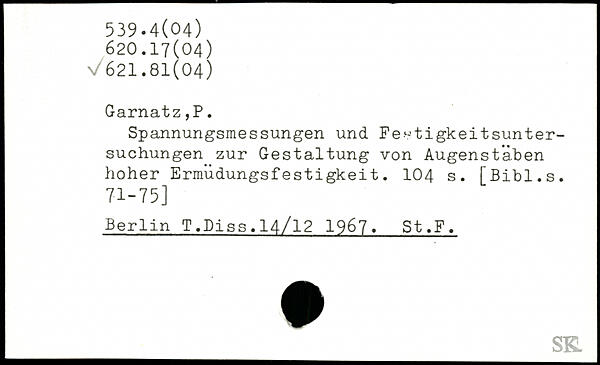 Spannungsmessungen und Festigkeitsunter-suchungen zur Gestaltung von Augenstäben hoher Ermüdungsfestigkeit.