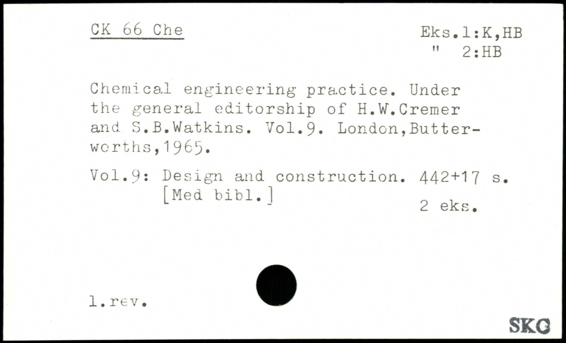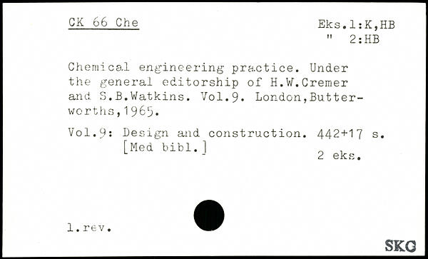 Chemical engineering practice. Under the general editorship of H.W.Cremer and S.B.Watkins.