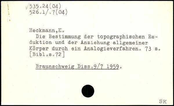 Die Bestimmung der topographischen Reduktion und der Anziehung allgemeiner Körper durch ein Analogieverfahreno