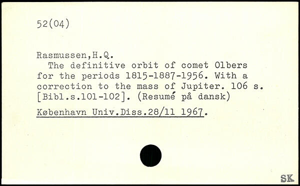 The definitive orbit of comet Olbers for the periods 1815-1887-1956. With a correction to the mass of Jupiter.