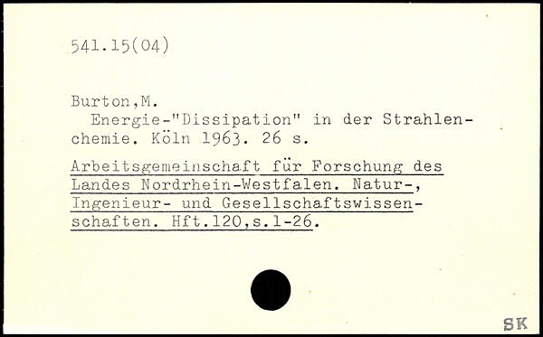 Energie-"Dissipâtion" in der Strahlenchemie.