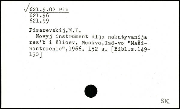 Novyj instrument dlja nakatyvanija rez'b i slicev. Moskva,Izd-vo "Masi-nostroenie",1966. I