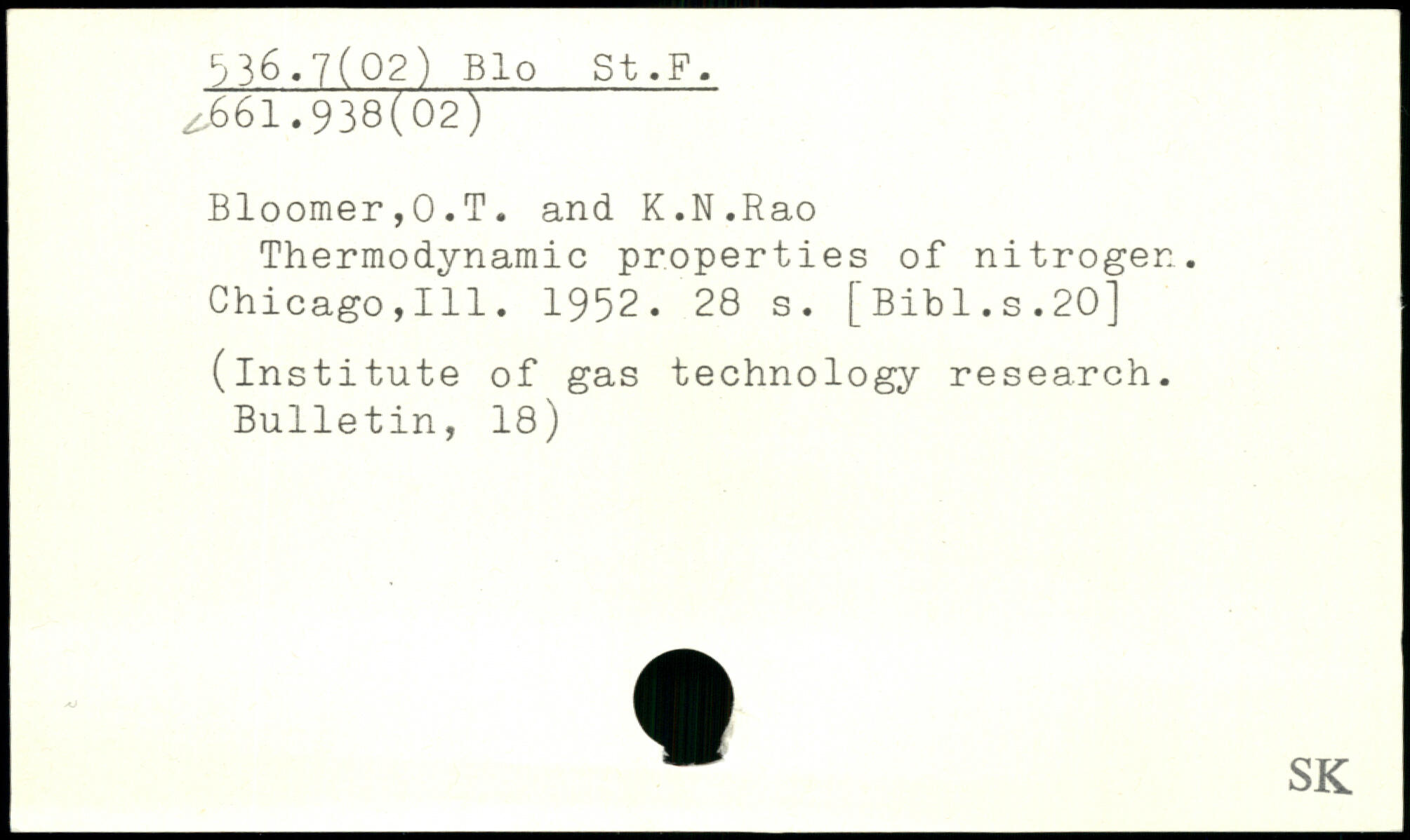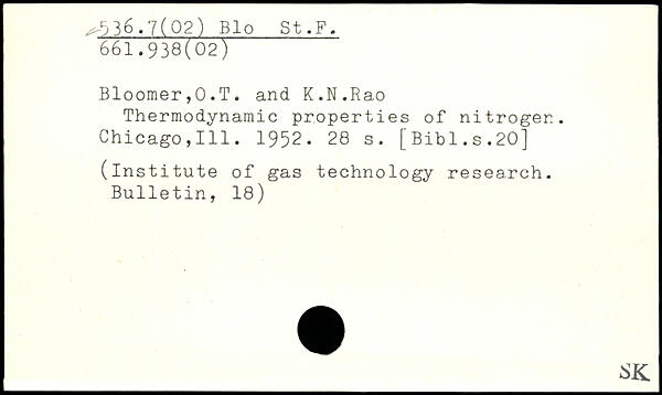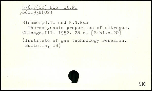 Thermodynamic properties of nitrogen. Chicago,111. 1952.
