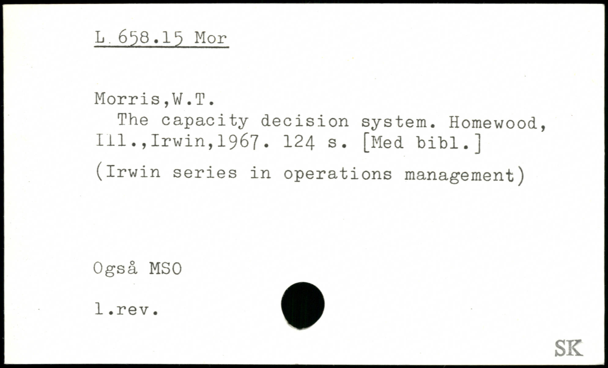 The capacity decision system. Homewood, 1111rwin,1967.