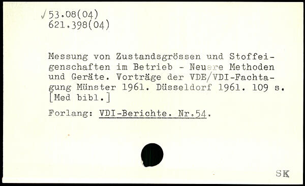 Messung von Zustandsgrössen und Stoffeigenschaften im Betrieb - Neuere Methoden und Geräte. Vorträge der VDE/VDI-Fachtagung Münster 1961, Düsseldorf 1961.