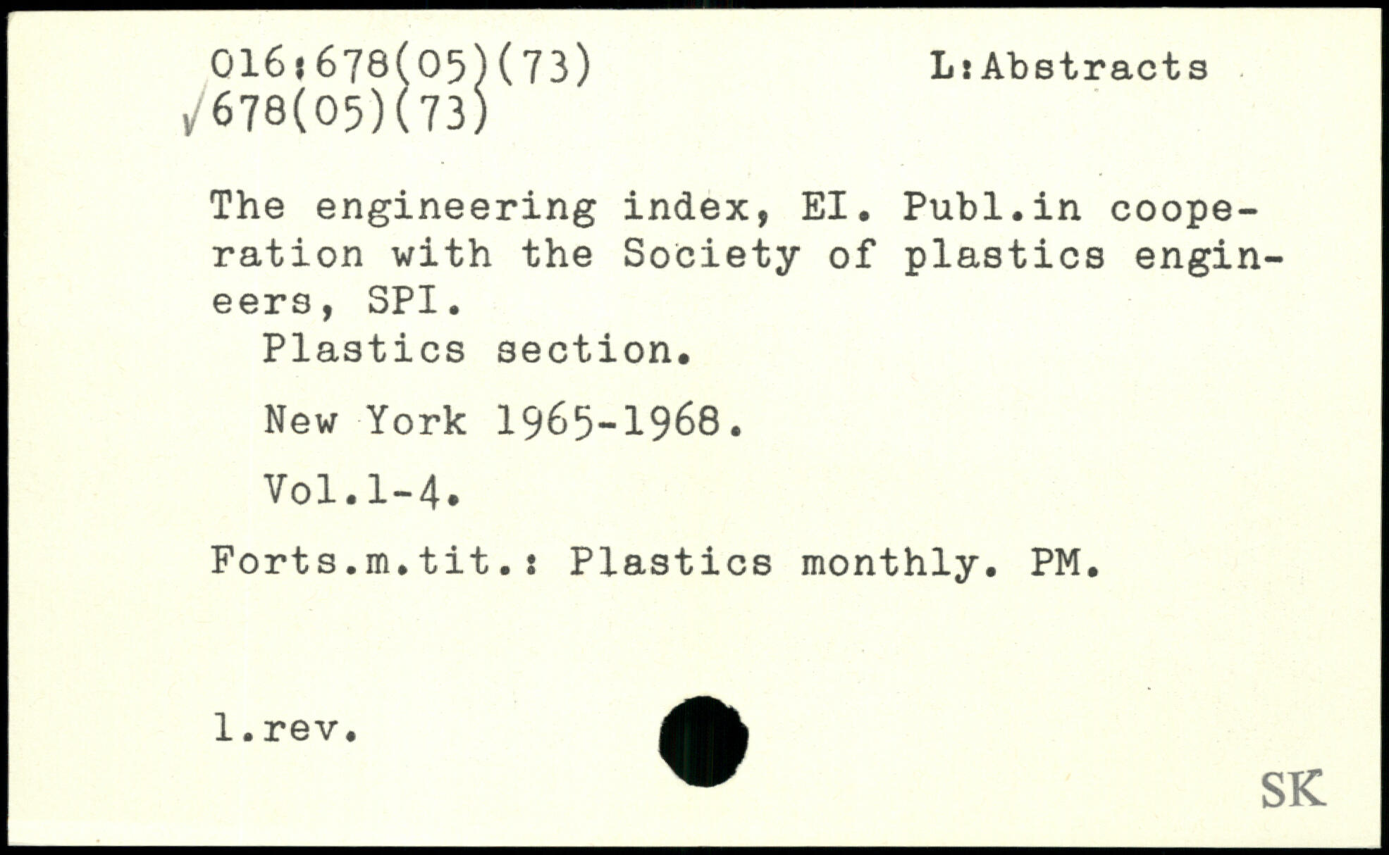The engineering index, El. Publ.in cooperation with the Society of plastics engineers, SPI. Plastics section.