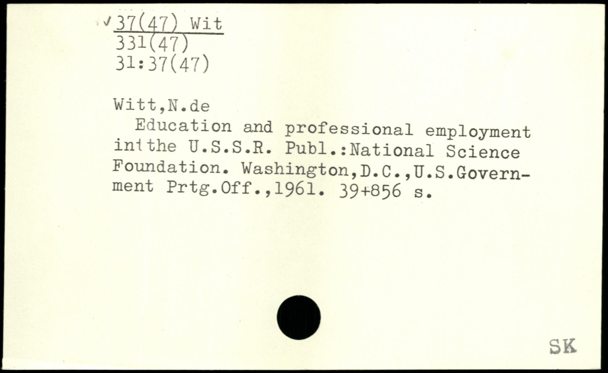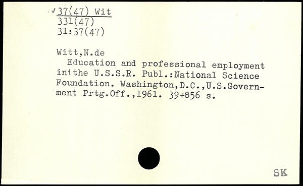 Education and professional employment ini the U.S.S.R. Publ.:Rational Science Foundation. Washington,D.C.,U.S.Government Prtg.Off.,1961.