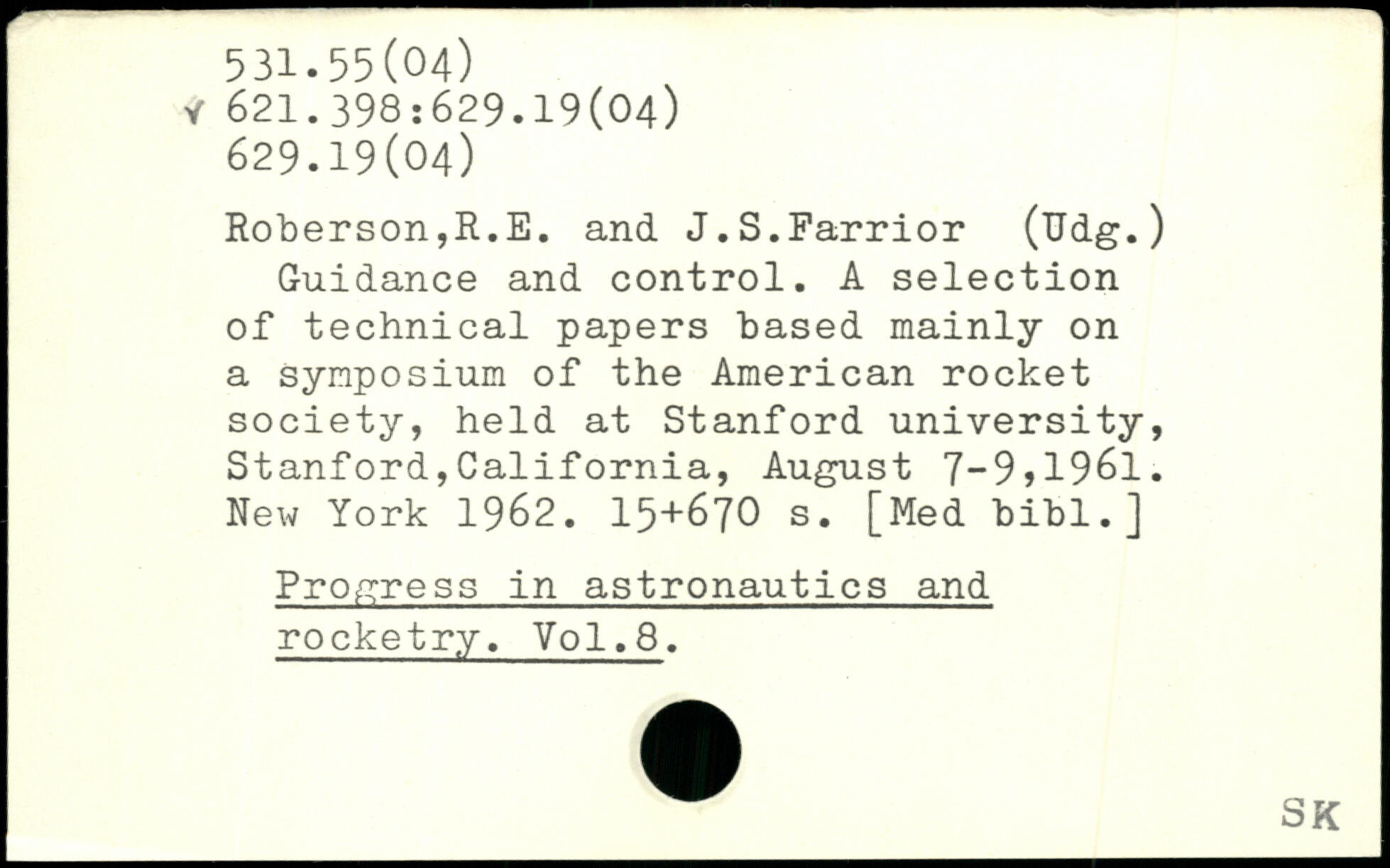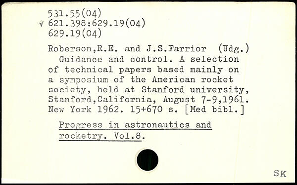 Guidance and control. A selection of technical papers based mainly on a symposium of the American rocket society, held at Stanford university, Stanford,California, August 7-9>1961.