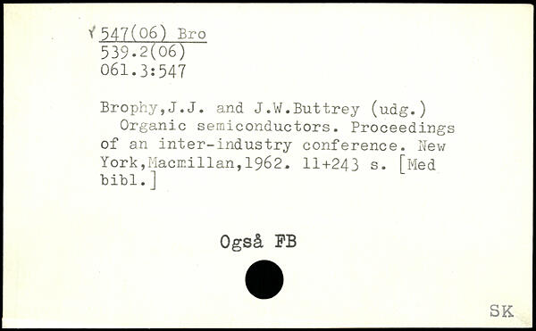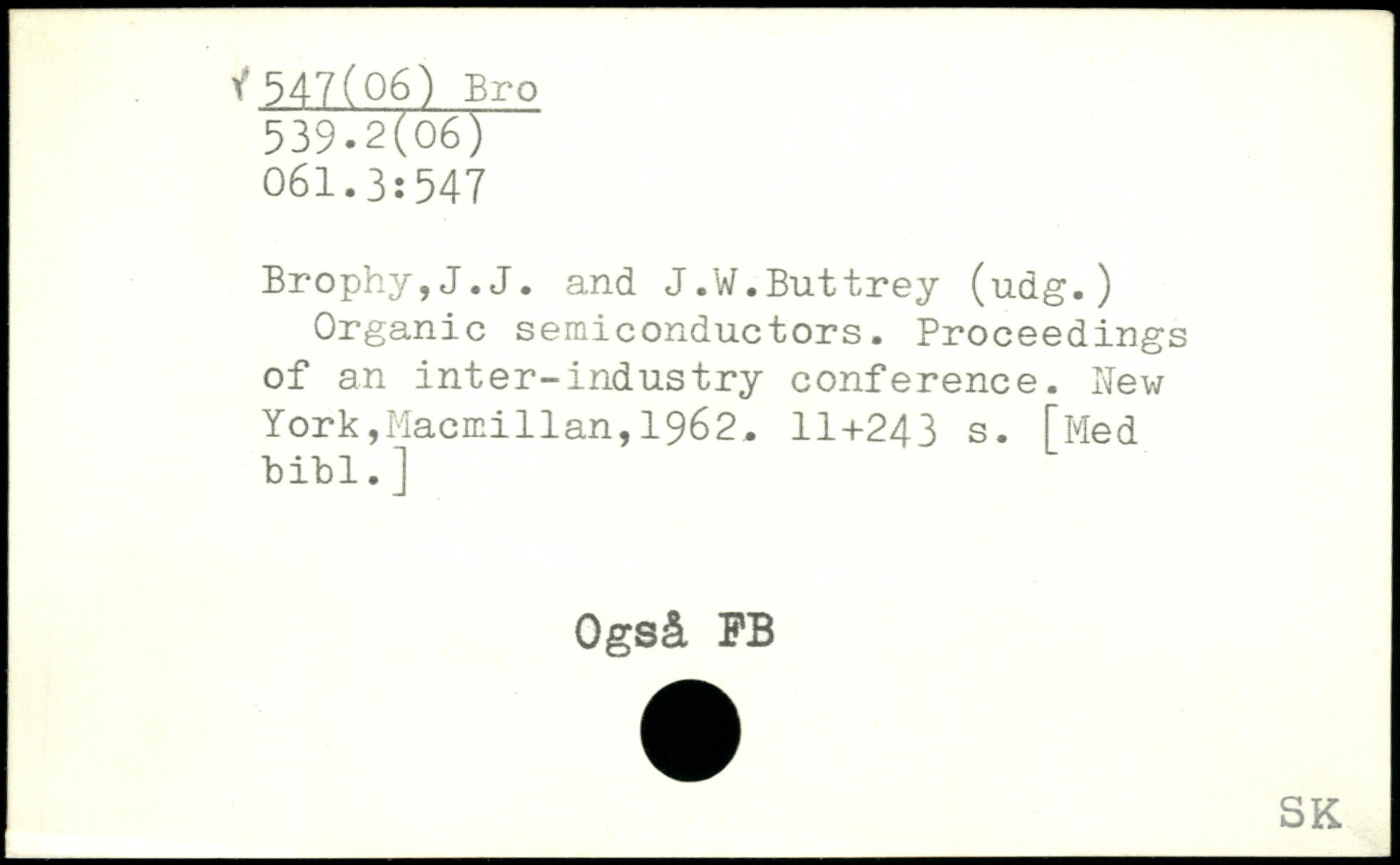 Organic semiconductors. Proceedings of an inter-industry conference. îîew