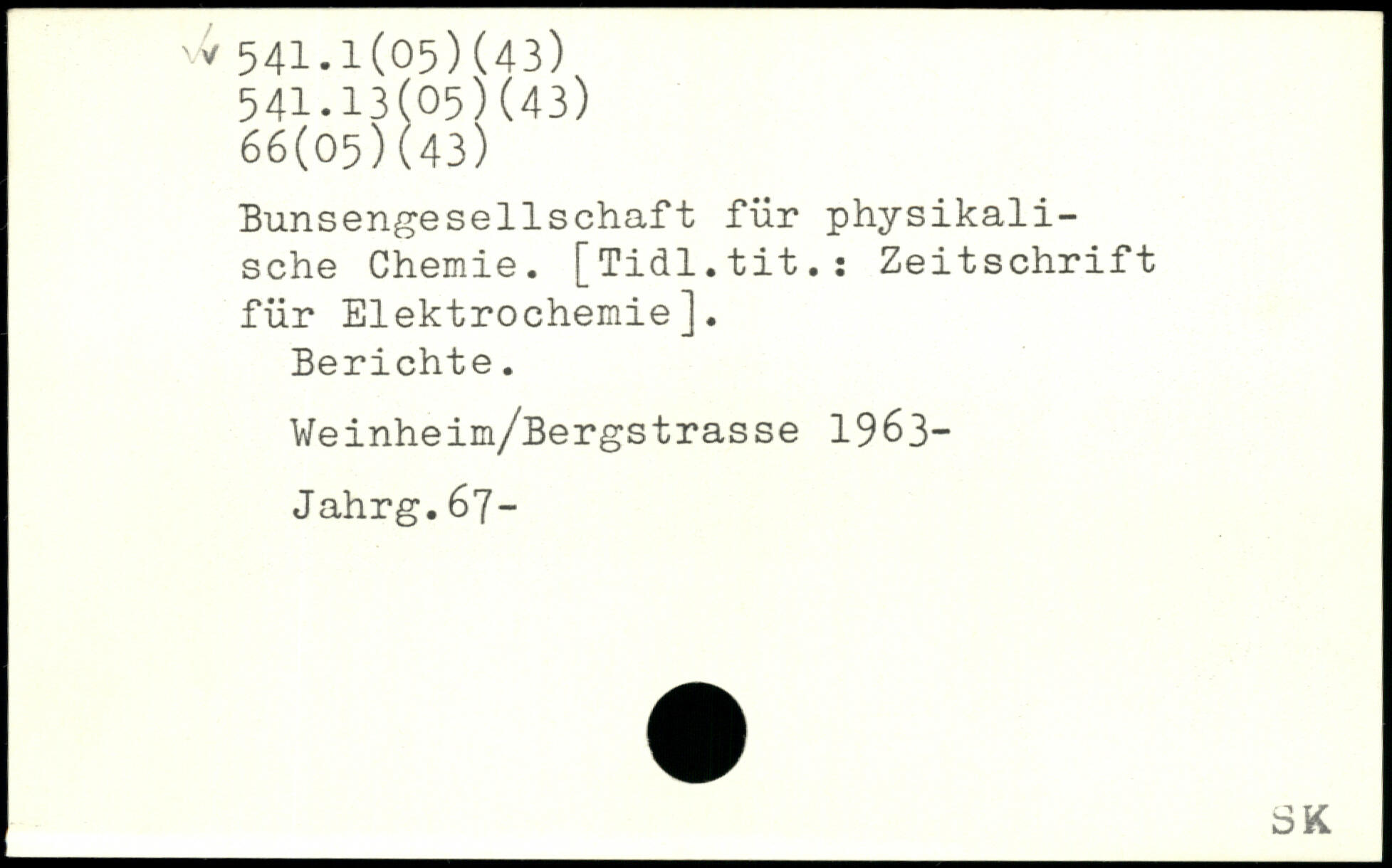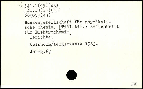 BimsengesellSchaft für physikalische Chemie. [Tidl.tit.s Zeitschrift für Elektrochemie]. Berichte. Weinheim/Bergstrasse 1963-Jahrg.67-