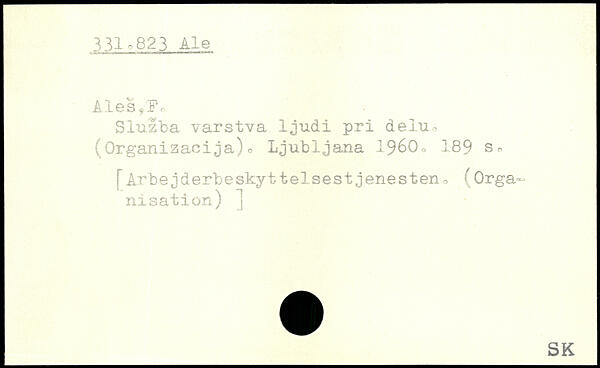 Sluzba varstva ljudi pri delu? (Organizacija)o Ljubljana 1960o