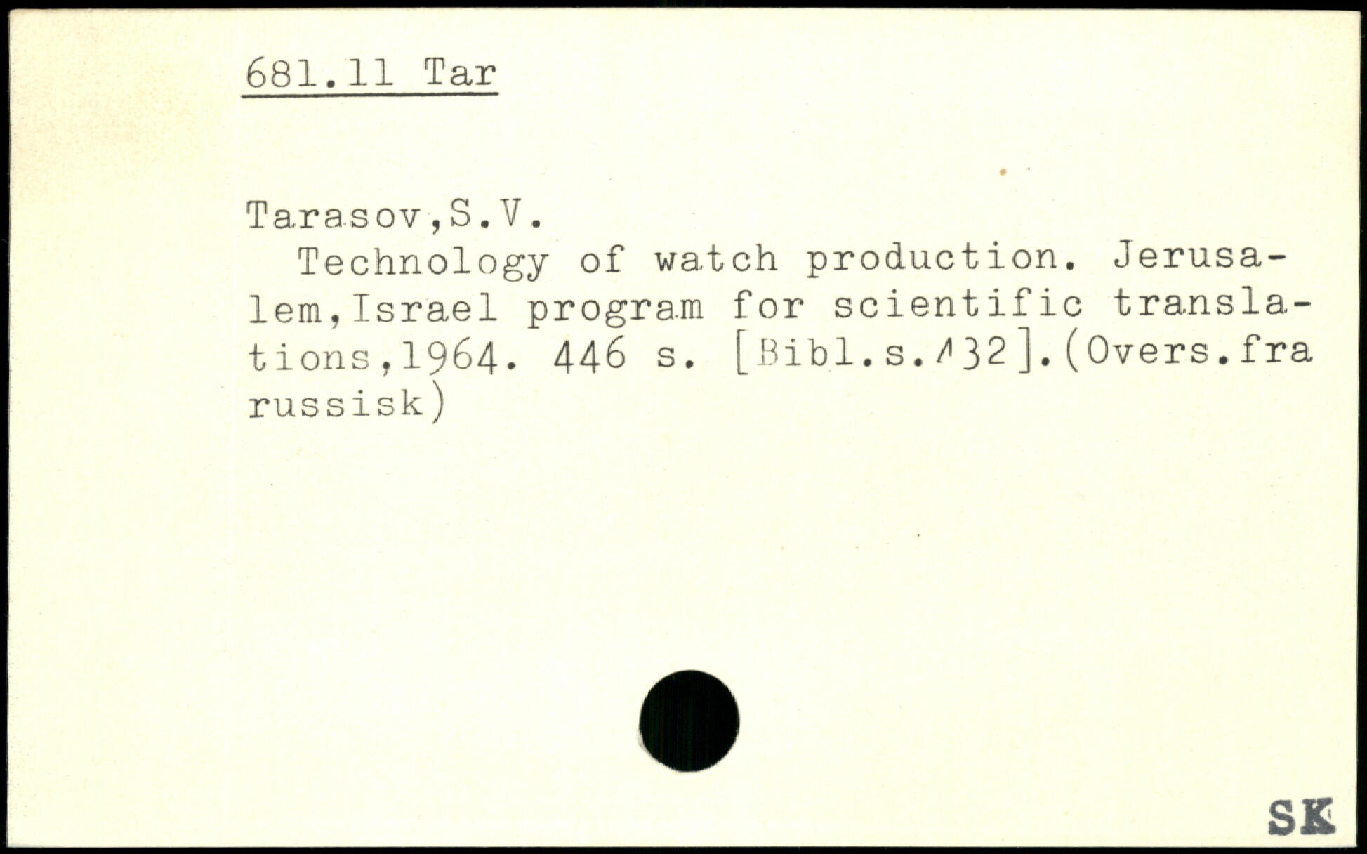Technology of watch production. Jerusalem, Israel program for scientific translations, 1964.