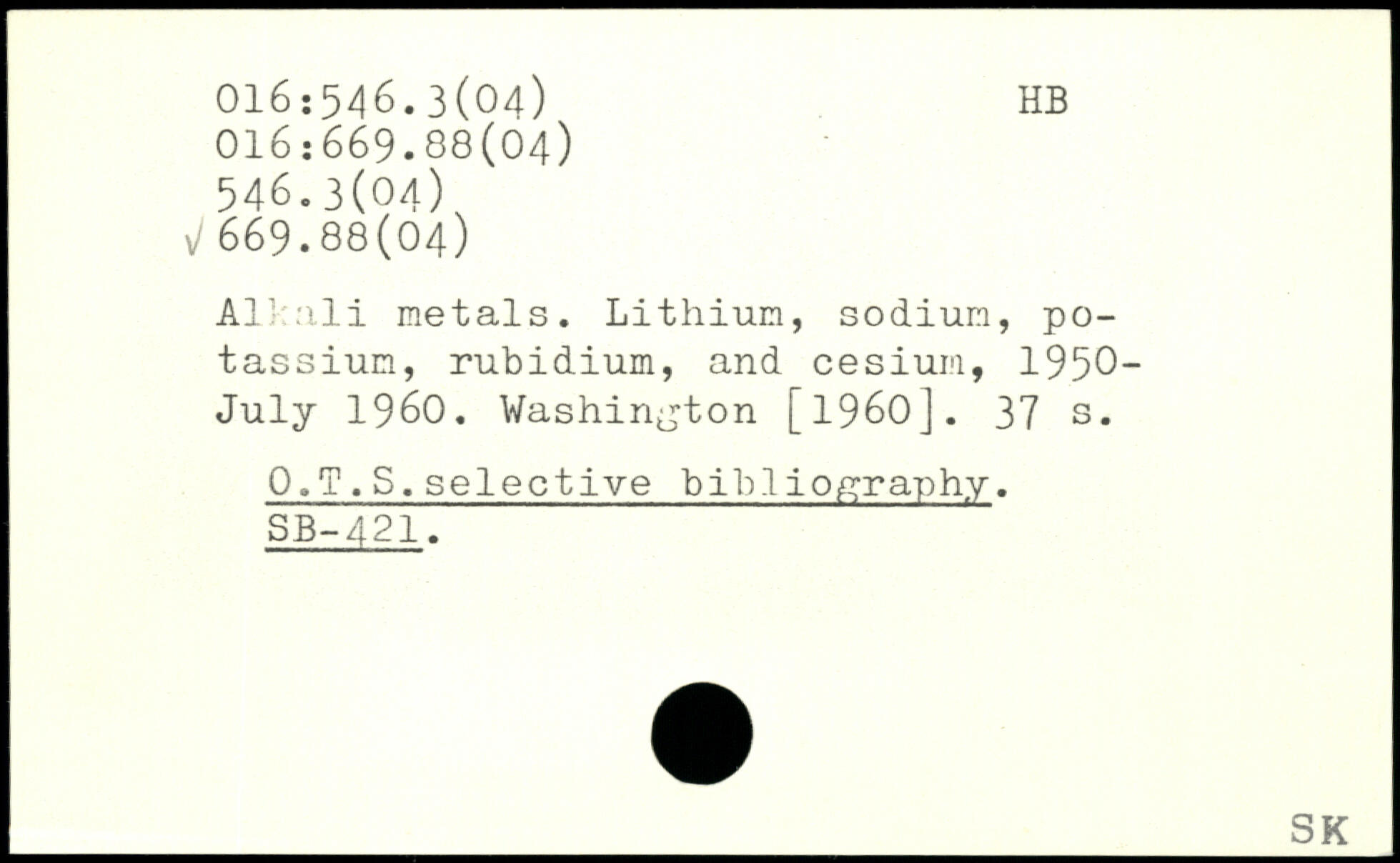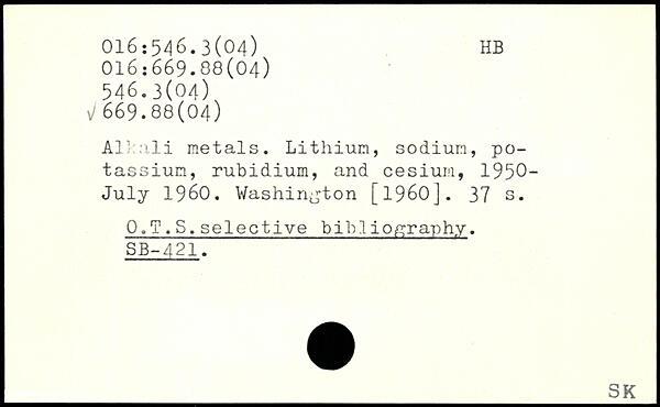 Al: ali metals. Lithium, sodium, potassium, rubidium, and cesium, 1950-July 1960.