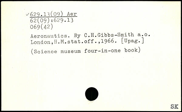 Aeronautics. By C.H.Gibbs-Smith a.o. London,H.M.stat.off.,1966. [Upag.J