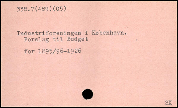 Industriforeningen i København. Forslag til Budget , for 1895/96-1926