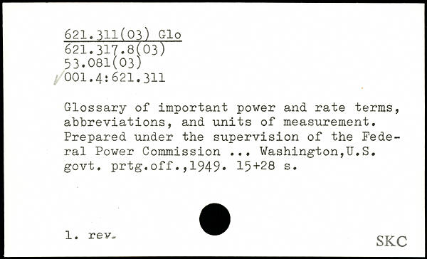 Glossary of important power and rate terms, abbreviations, and units of measurement. Prepared under the supervision of the Federal Power Commission ... Washington,!!. S. govt. prtg.off.,1949