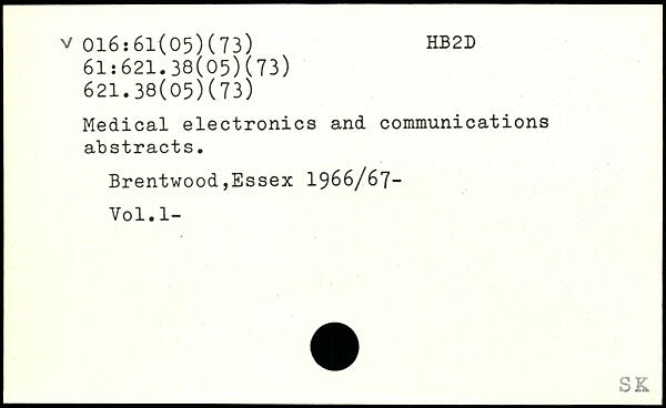 Medical electronics and communications abstracts. Brentwood,Essex 1966/67-Vol.l-