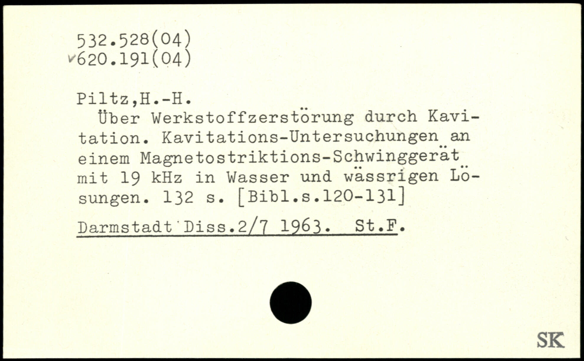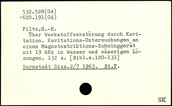Über WerkstoffZerstörung durch Kavitation. Kavitations-Untersuchungen an einem Magnetostriktions-Schwinggerät_ mit 19 kHz in Wasser und wässrigen Losungen.