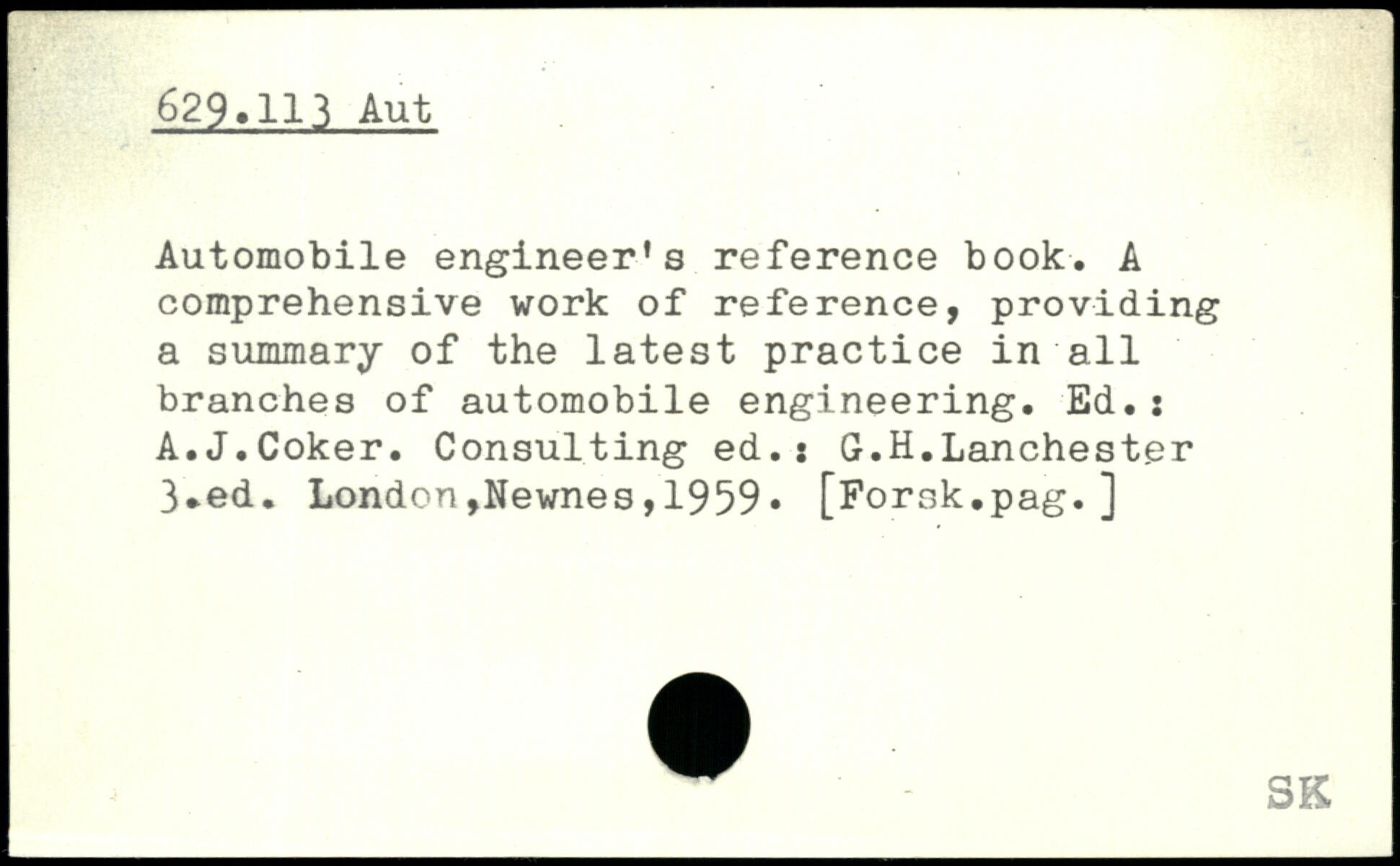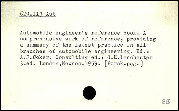 Automobile engineer’s reference book. A comprehensive work of reference, providing a summary of the latest practice in all branches of automobile engineering. Ed.: A.J.Coker. Consulting ed.j G.H.Lanchester