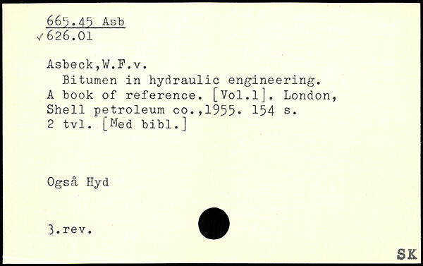 Bitumen in hydraulic engineering. A book of reference. [Vol.lJ.