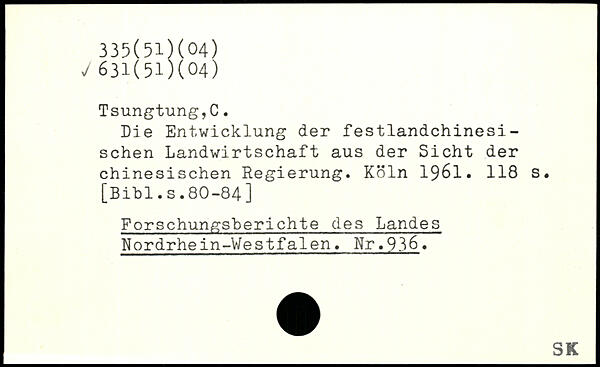 Die Entwicklung der festlandchinesischen Landwirtschaft aus der Sicht der chinesischen Regierung.