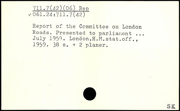 Report of the Committee on London Roads. Presented to parliament ... July 1959. London,H.M.stat.off., 1959.