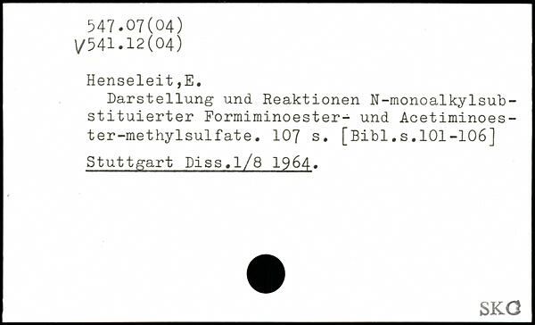 Darstellung- und Reaktionen N-monoalkylsub-stituierter Formiminoester- und Acetiminoes-ter-methylsulfate.